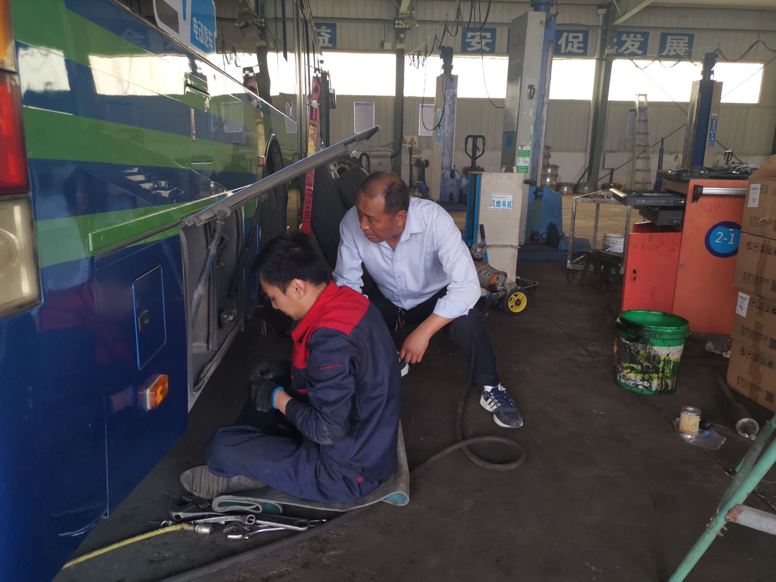 本次專項(xiàng)檢查工作由分公司經(jīng)理帶隊(duì),副經(jīng)理和機(jī)務(wù)人員、例保人員參加,在早上出場(chǎng)前對(duì)所有運(yùn)營(yíng)車輛的發(fā)動(dòng)機(jī)倉(cāng)(發(fā)電機(jī)倉(cāng))、輪胎、轉(zhuǎn)向傳動(dòng)系統(tǒng)、燈光、雨刮、顯示屏、滅火器、安全錘等進(jìn)行專項(xiàng)檢查。對(duì)檢查中發(fā)現(xiàn)的5臺(tái)純電動(dòng)車輛的電池漏油情況,要求機(jī)務(wù)人員安排整改修復(fù)到位;對(duì)12臺(tái)發(fā)動(dòng)機(jī)倉(cāng)衛(wèi)生不合格的車輛駕駛員提出批評(píng)教育,要求當(dāng)班駕駛員必須清理干凈再出場(chǎng)運(yùn)營(yíng)。