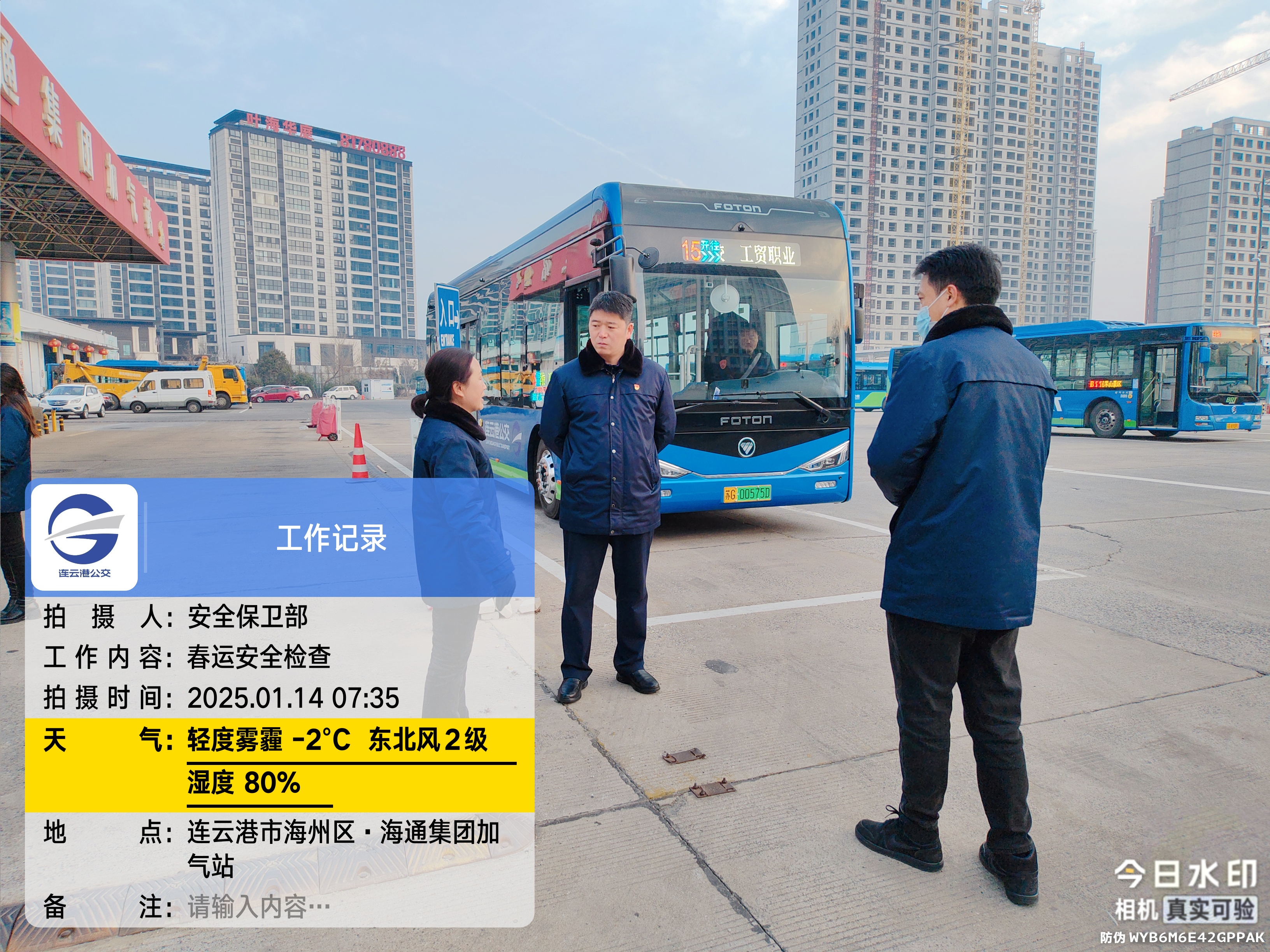 1 月 14 日春運首日,公交集團黨委書記、總經理王學兵及領導班子成員、相關部室成員組成春運檢查組深入一線,開展安全生產大檢查,確保春運期間市民出行安全。此次檢查是對集團 2025 年度春運動員大會精神的有力踐行,旨在為廣大市民的出行安全保駕護航。