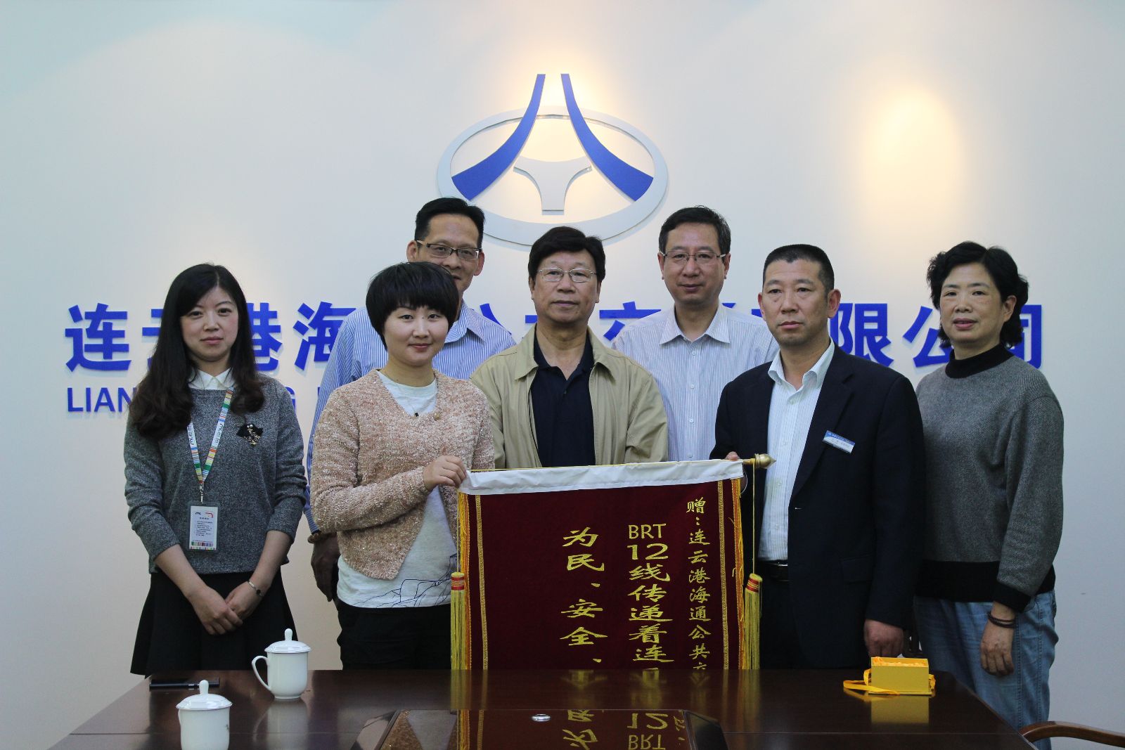 5月6日,連云港華東國際商貿城常務副總裁任家齊一行4人將一面印有“B12線傳遞著連云港海通公交的為民、安全、優質和溫暖”字樣的錦旗送到海通公共交通有限公司,衷心感謝海通公交兩年來在促進華東城發展給予的大力支持和幫助。