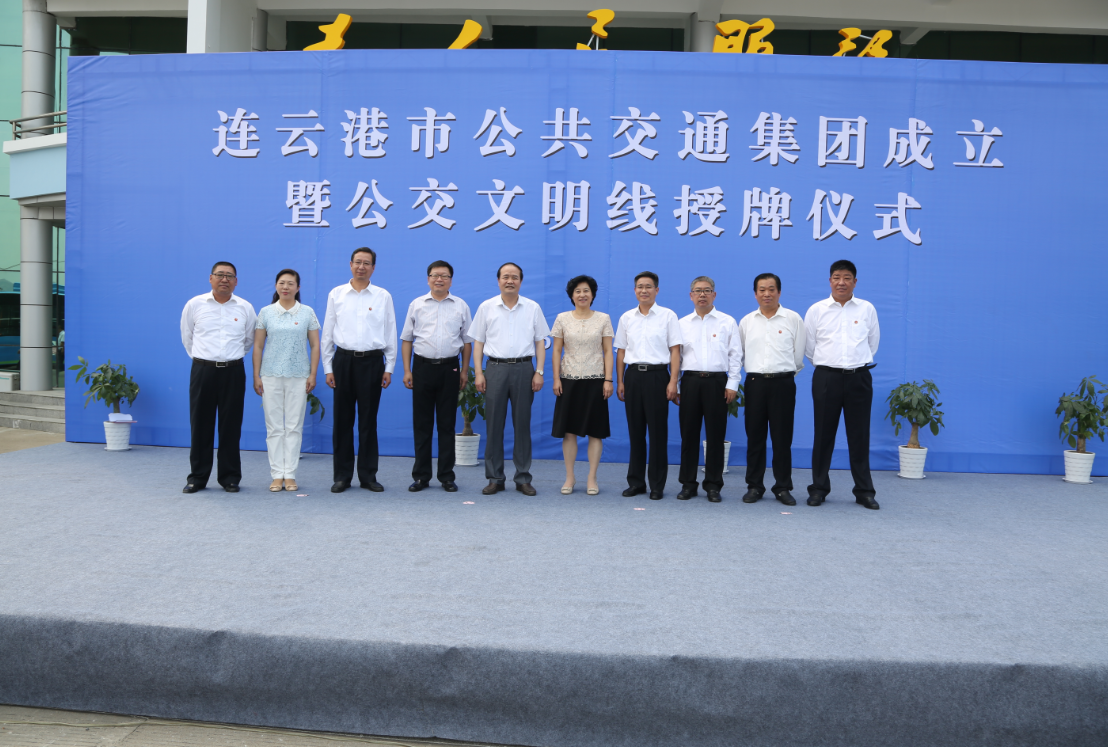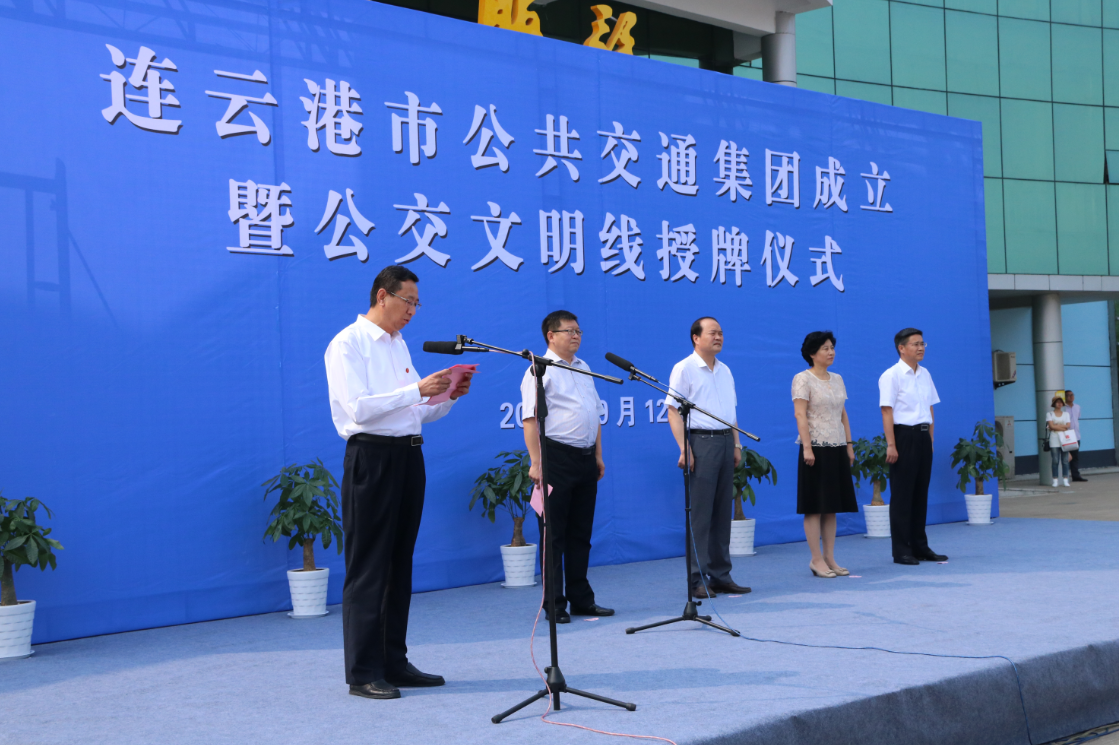 9月12日上午10時,連云港市公共交通集團成立暨四條文明線授牌儀式在公交集團院內成功舉行,標志著我市公交事業發展進入了新起點,踏上了新征程。副市長尹哲強出席活動并為市公共交通集團揭牌,市財政局局長孫宗鳳、市發改委、經信委、國資委、公安局、交通局、國土局、規劃局、城鄉建設局、運管處、交警支隊、公安公交分局等市相關部門負責人以及市交通控股集團領導、部門及權屬單位負責人、市公共交通集團員工代表參加活動。市交通控股集團黨委書記、董事長劉永能主持活動儀式。