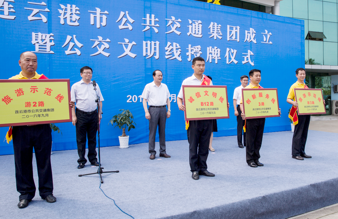 儀式上,副市長尹哲強、孫宗風局長、劉永能書記、仲偉濤總經理為B12、3路、游2路、游3路四條公交線路授予“誠信文明線”、“創新服務線”、“旅游示范線”。被命名的四條公交文明線,既有涉及廣大產業工人出行的B12線,又有我市傳統城鄉公交3路線,還有通達我市花果山、連島景區的游2、游3路公交線,代表性強,涉及面廣,將通過誠信服務、創新服務、旅游示范線的特色創建,打造公交服務品牌,全面服務我市社會經濟發展,造福港城市民百姓。