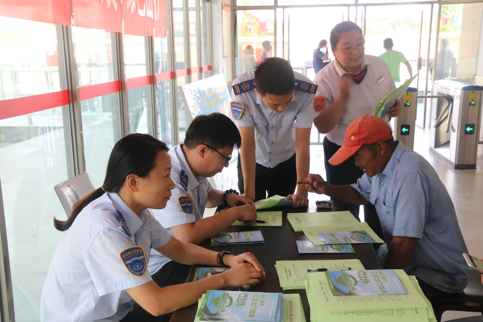 9月24日上午,根據(jù)2017年“公交出行宣傳周”主題活動(dòng)的安排,公交集團(tuán)組織開(kāi)展了公交出行宣傳周集中宣傳活動(dòng),在海州客運(yùn)站、購(gòu)物中心南、師專(zhuān)、萬(wàn)達(dá)廣場(chǎng)四處主要客流集散地設(shè)立宣傳咨詢(xún)點(diǎn),每個(gè)宣傳點(diǎn)均懸掛橫幅,安排至少4名工作人員現(xiàn)場(chǎng)向市民群眾發(fā)放“公交出行宣傳周”宣傳冊(cè)、連云港市公交出行指南,宣傳公交“一卡通”政策、掌上公交APP、“掃碼乘車(chē)”等實(shí)施智能公交信息化服務(wù)措施,同時(shí)以調(diào)查問(wèn)卷的方式與市民進(jìn)行互動(dòng),征求市民建議和意見(jiàn),引導(dǎo)社會(huì)群眾支持和參與城市公共交通發(fā)展。