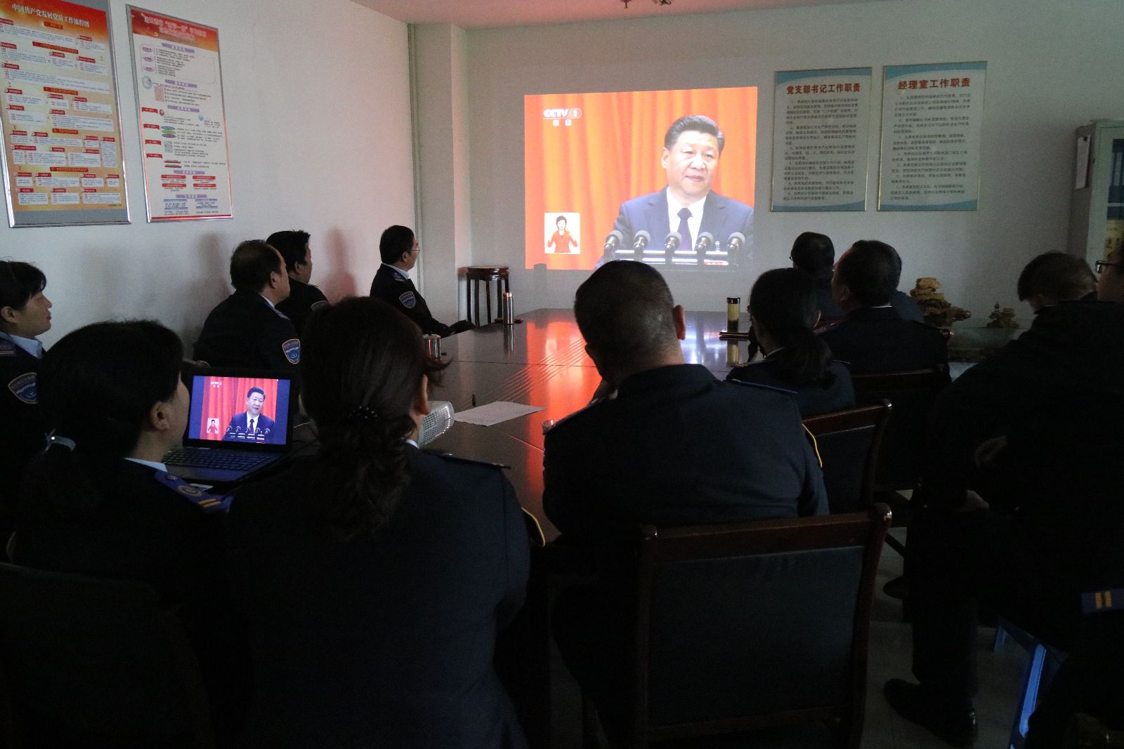 上午8時30分,公交集團機關黨員干部早早就集中到會議室,提前做好收看準備工作,全體黨員齊聚一堂認真聆聽習近平總書記代表第十八屆中央委員會向大會所作的報告。