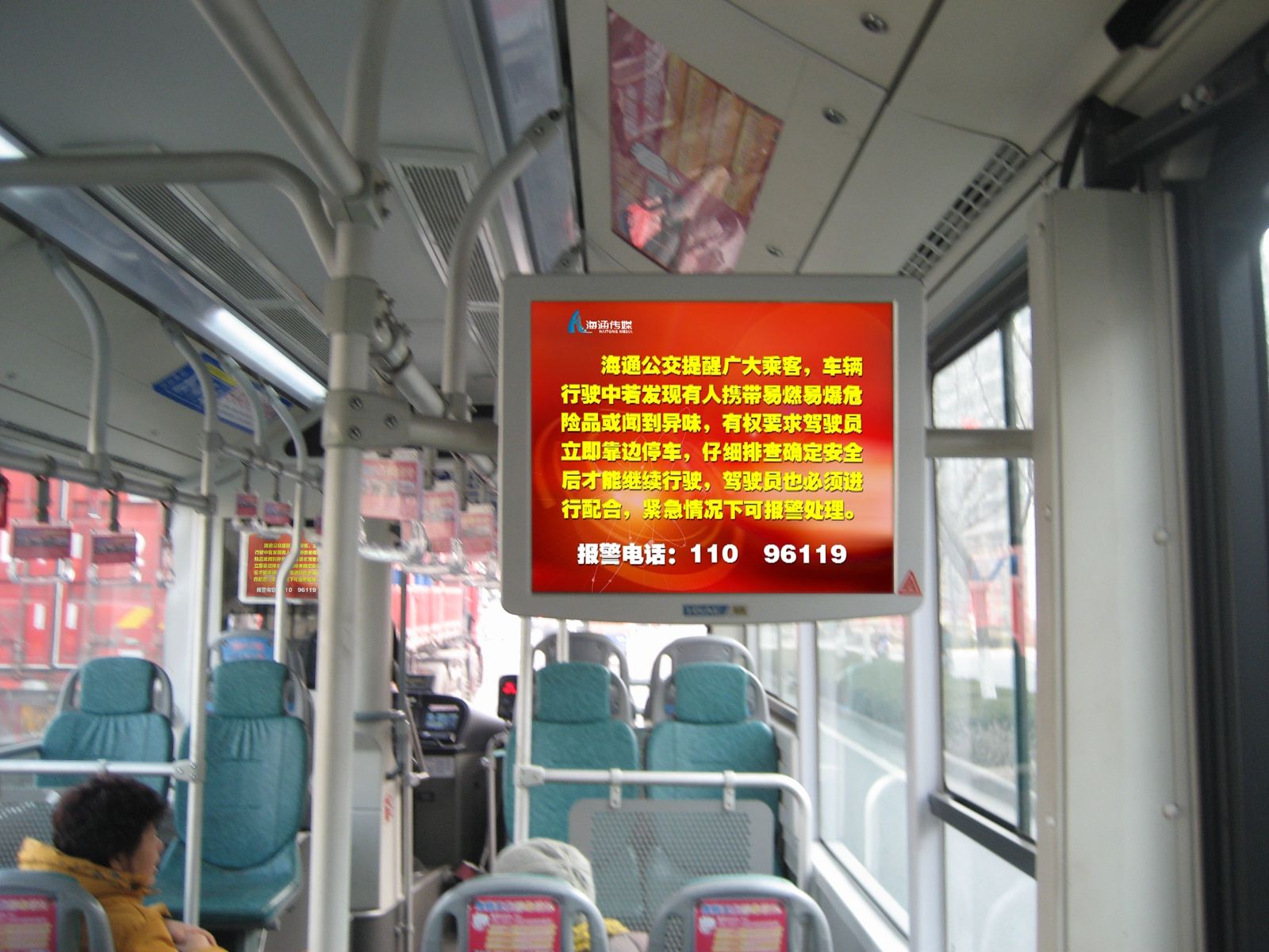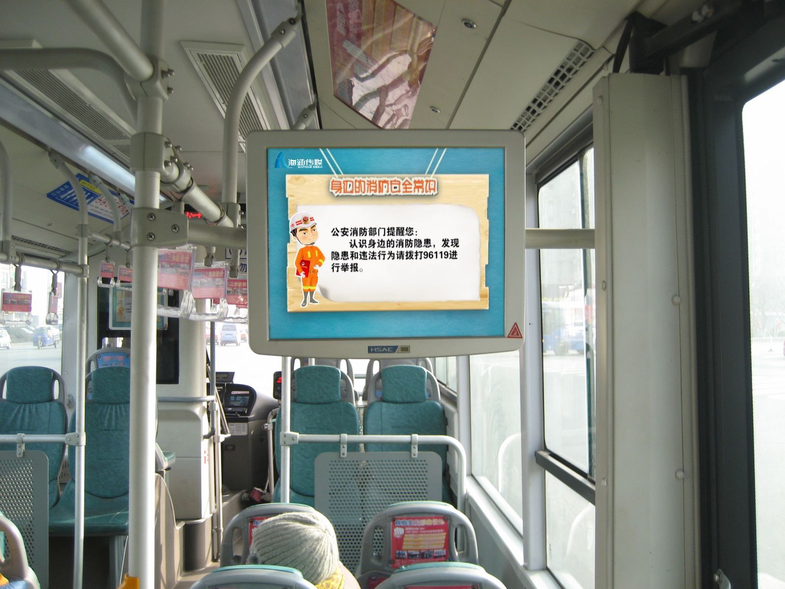 為了給廣大乘客營造一個安定、和諧的春運出行環(huán)境,確保乘客乘車安全,海通公交與連云港市公安消防支隊聯(lián)合開展消防知識宣傳活動。公司為迅速有效開展好宣傳活動,利用154臺BRT車輛、185臺常規(guī)公交車輛上的車載電視滾動播放《身邊的消防安全常識》公益片,提醒乘客禁止攜帶危險品乘車,自覺維護公共消防安全。在參加春運的616臺公交車上安裝了1000張消防知識公益宣傳卡片,以圖文的形式生動地宣傳消防安全防火知識。