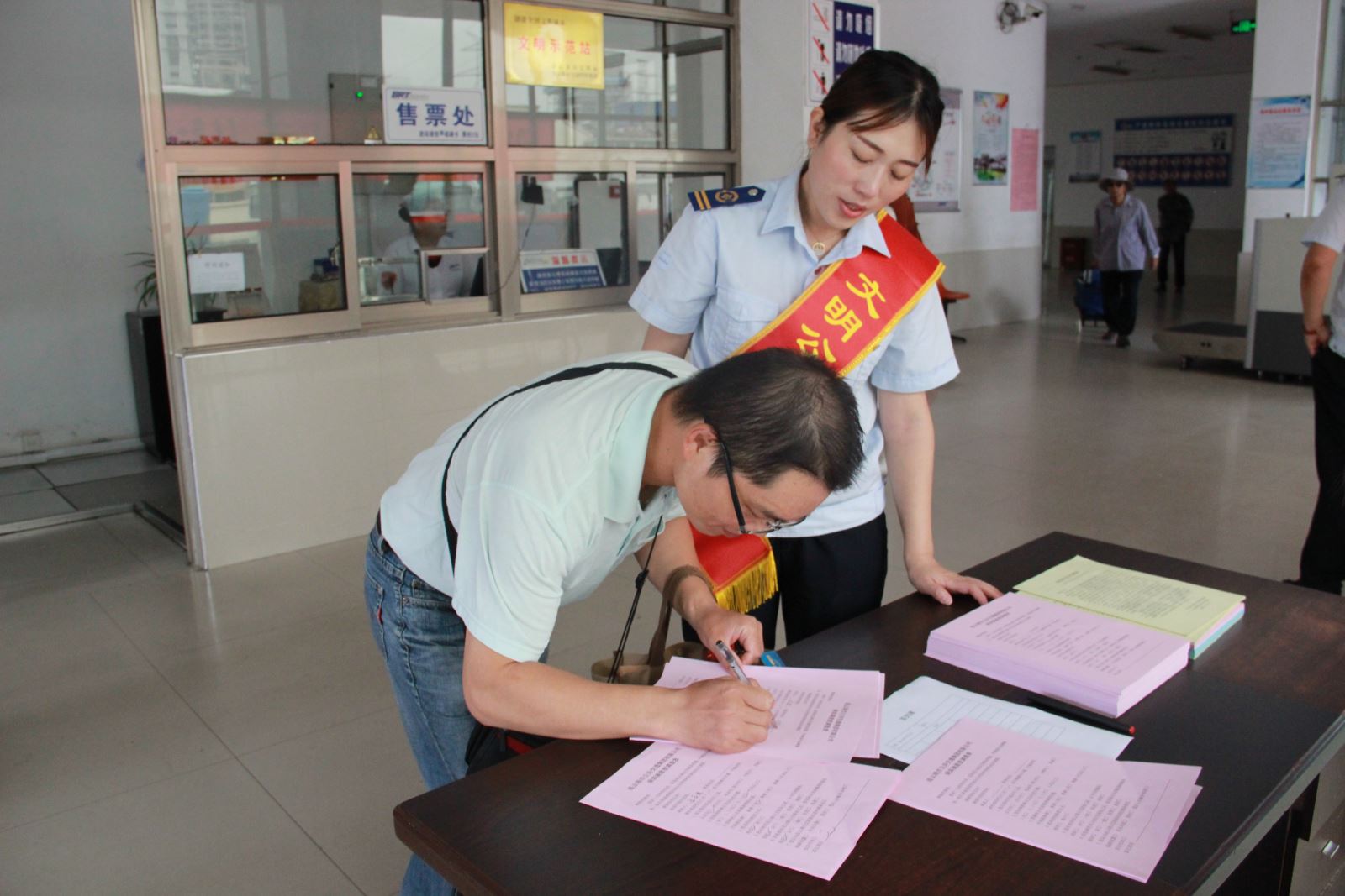 按照活動安排,9月17日上午,公交集團組織開展了2018年公交出行宣傳周集中宣傳活動,在海州客運站、步行東街、購物中心南三處主要客流集散地設立了公交宣傳咨詢點,現場懸掛活動主題橫幅,安排至少4名工作人員現場向市民群眾發放公交出行宣傳周倡議書,以調查問卷形式與市民進行現場互動,征求市民建議和意見,引導社會群眾支持和參與城市公共交通發展。