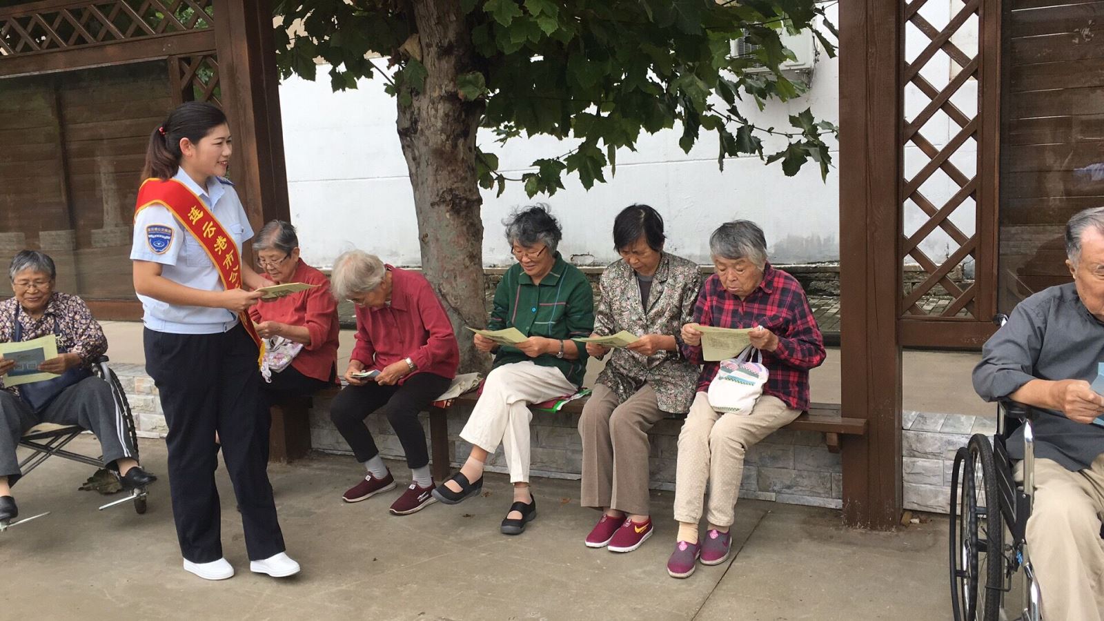 活動當天,志愿者們早早的來到活動場地,拉好橫幅,將桌子一字排開,整齊擺放好公交線路簡介及公交滿意度調查宣傳材料,并熱情地向社區居民發放,邀請他們填寫公交滿意度調查問卷。值得一提的是,由于礦山院家屬院是老小區,多數前來填寫問卷的居民都已年過七旬,為確保問卷填寫的規范性和準確性,志愿者們耐心地將問卷內容及選項一遍遍讀給老人們聽,仔細講解,方便老人填寫。