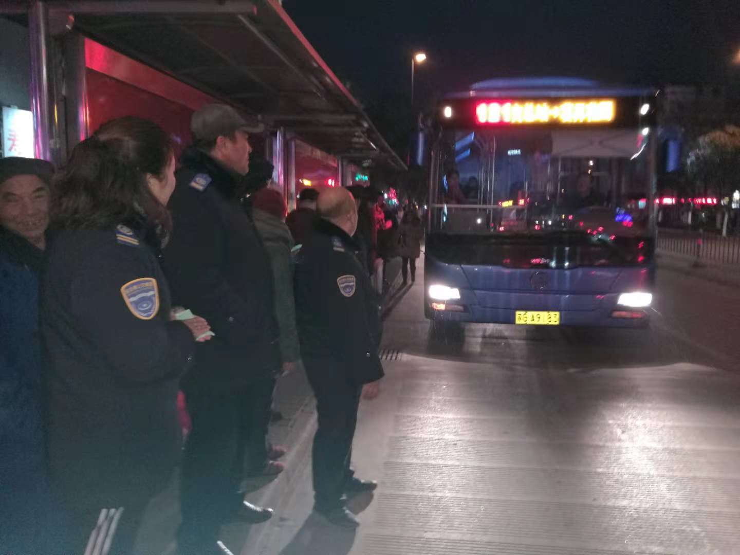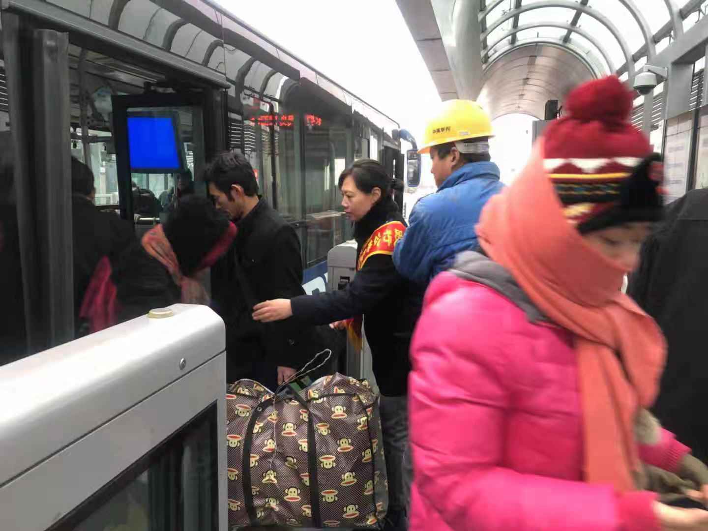 志愿服務期間,天氣最低溫度達到了零下7度,12月11日,天空還飄起了雪花,檢查人員不畏嚴寒,雨雪不改的堅守在崗位上,用實際行動助力創文工作的開展。志愿者們在站點提醒駕駛員著裝規范、文明用語、禮貌待客,保證車輛衛生整潔,文明行車。在客流較多時,志愿者們及時疏導乘客文明乘車,做好文明引導服務工作,強化市民交通安全意識,還為他們提供轉乘咨詢服務,幫助老弱病殘孕等特殊乘客有序乘車、搬運行李。通過大家兩天的努力,不僅贏得了市民的支持和認可,乘客們有序乘車,也創文工作深入人心。
