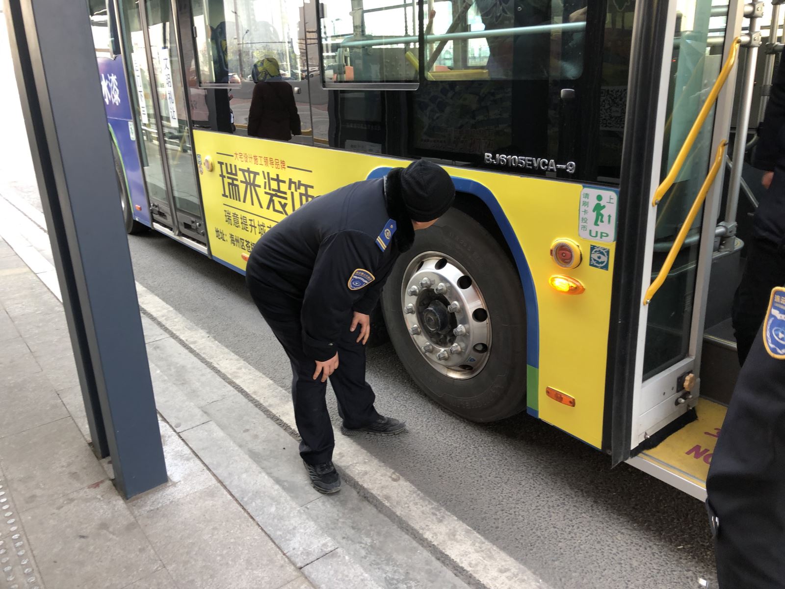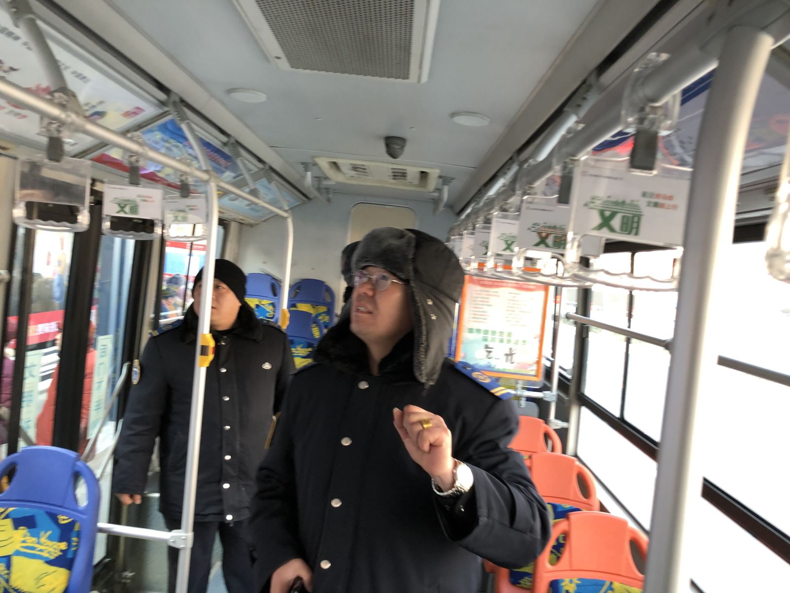 公交集團公交事業一部部分管理人員組成檢查小組,對車容車貌、車輛安全技術狀況、車載設施設備、駕駛員“三證”、標語標識等項目對照標準,逐項核查,督促駕駛員做好行車前、行車中、收車后的三檢工作,完成好車輛日常維護。