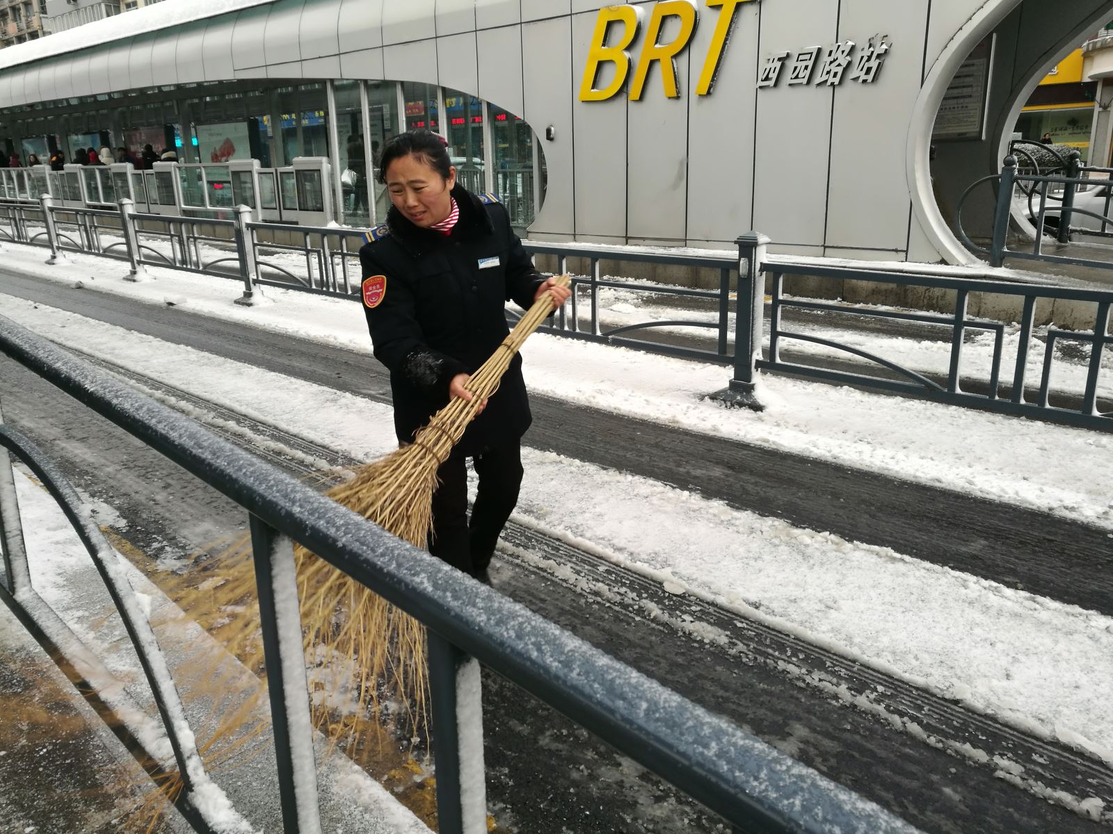每天人來(lái)人往,BRT站臺(tái)地面有些污漬用拖把無(wú)法清理干凈,葛粉娣就利用休息時(shí)間來(lái)到站臺(tái),在難以清除的污漬上撒上洗衣粉,用刷子刷再用水沖洗。單位發(fā)的洗衣粉用完了,葛粉娣就從家里帶來(lái),刷子刷壞了,就自己拿錢(qián)買(mǎi)新的。站臺(tái)的保潔員在她的影響下,從一開(kāi)始的看著葛粉娣干,到后來(lái)跟著她一起干,西園路的站務(wù)員們,在葛粉娣這種無(wú)私奉獻(xiàn)精神的感染下,都積極主動(dòng)的清理站臺(tái)的衛(wèi)生,真正做到站臺(tái)衛(wèi)生無(wú)死角。