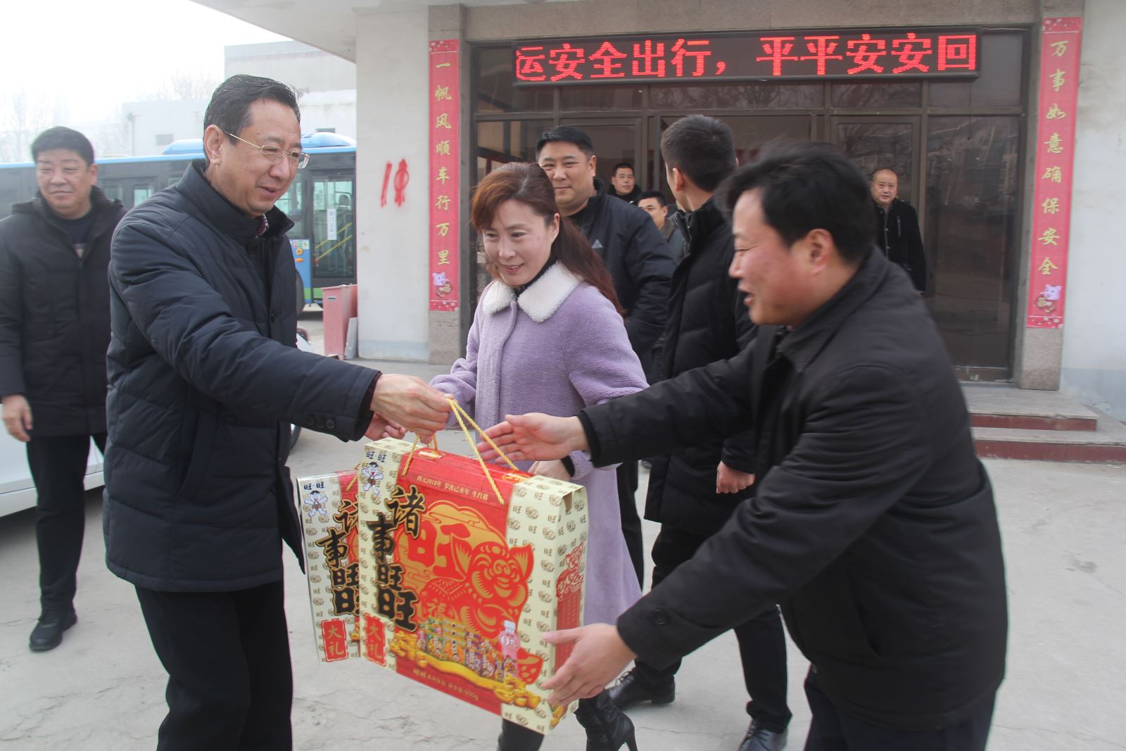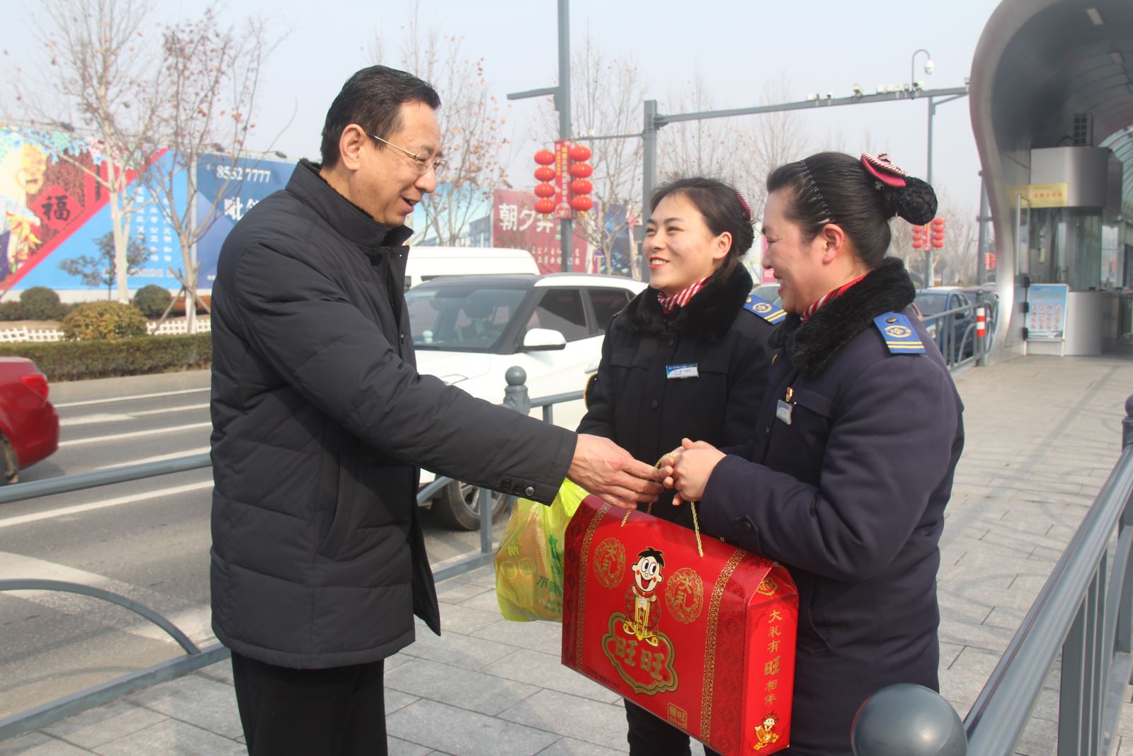 劉佃華一行走訪了大港路停車場、大浦保養廠、西城公交總站、海州客運站、華威停車場、BRT凌州廣場站,慰問了公交集團公交事業一部、快速公交事業部、公交事業二部、經營發展事業部、機務技術事業部的公交職工。每到一處,劉佃華都與春節假期堅守在工作崗位的干部職工親切握手,說聲“過年好”,感謝他們在春節期間為保障廣大乘客出行所作出的努力,并為他們送上新春大禮包表達新春的祝福。
