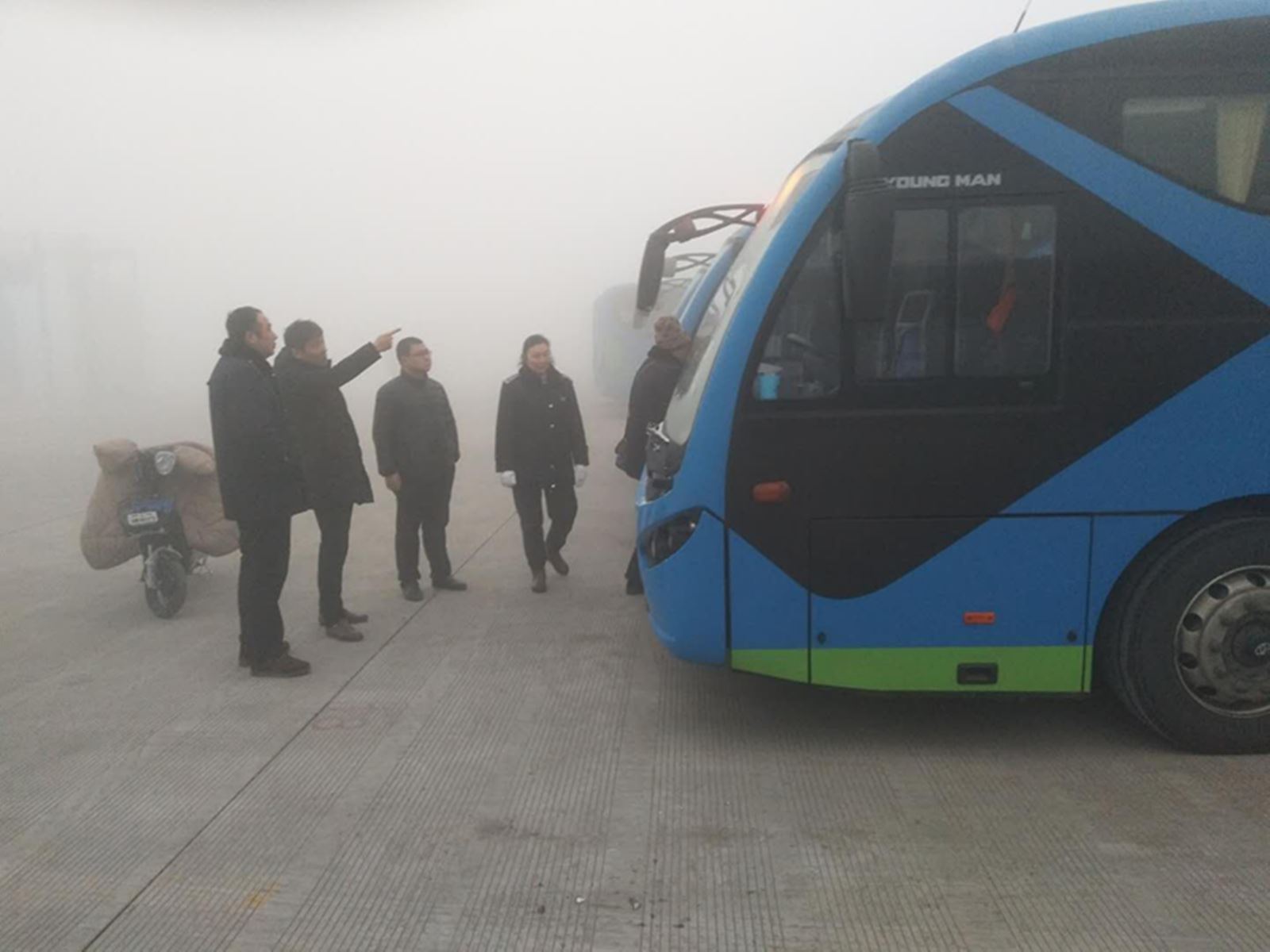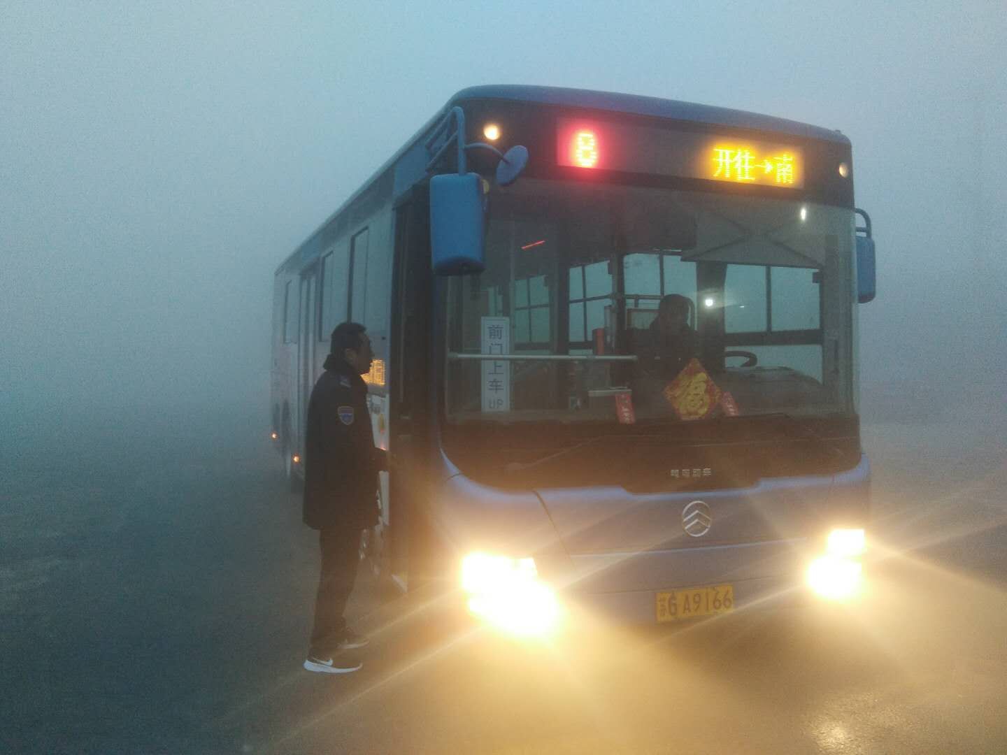 凌晨4點,公交集團各事業部安管人員前往各線路首末站、客流集中的站點實時關注客流、行車和道路情況,給車輛安全運營帶來了影響。為減少大霧天氣給市民出行帶來不便,集團立即安排部署各事業部根據線路實際情況做到以下三點:一是在各工作群內發布提示信息,管理人員加強安全交代,結合線路特點通過微信管理群反饋的路況信息,合理調整營運班次,避免車輛出現因大霧天氣導致運營間隔班次延長情況。二是要求各事業部智能調度中心通過智能監控掌握各線路堵車、霧情,根據實時情況,確保公交生產運營安全穩定。三是要求各事業部安管人員提前到達車場發車地點,逐車交代駕駛員嚴格遵守操作規程,正確使用防霧燈,出車前檢查燈光,行車中保持安全距離,嚴禁超車。