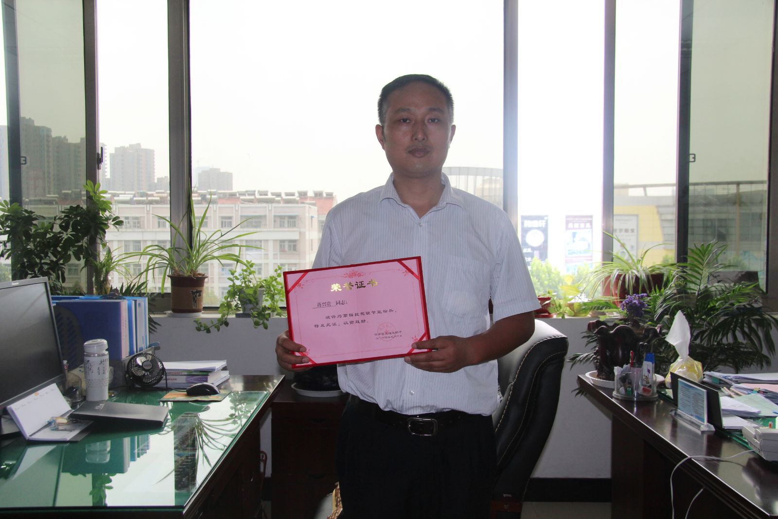 為了保證安全行車、節能降耗,他積極探索、研究,較快地熟悉車輛性能,找到節能降耗的訣竅,車輛進站時,如何踩剎車,乘客站得更穩;車輛轉彎時,打多少方向,車子減少震動,乘客不會有傾斜感覺;車輛行駛中,如何保持勻速,避免急剎車;車輛在什么狀態下最節氣等。慢慢地他掌握了節能降耗的方法。2013年,蔣興貴安全行車達10.3萬公里,節氣3145.77公斤,總價值2萬余元,對公司來說,運營成本降低了,對市民來說,乘車更加安全,城市環境也變得越來越好了。