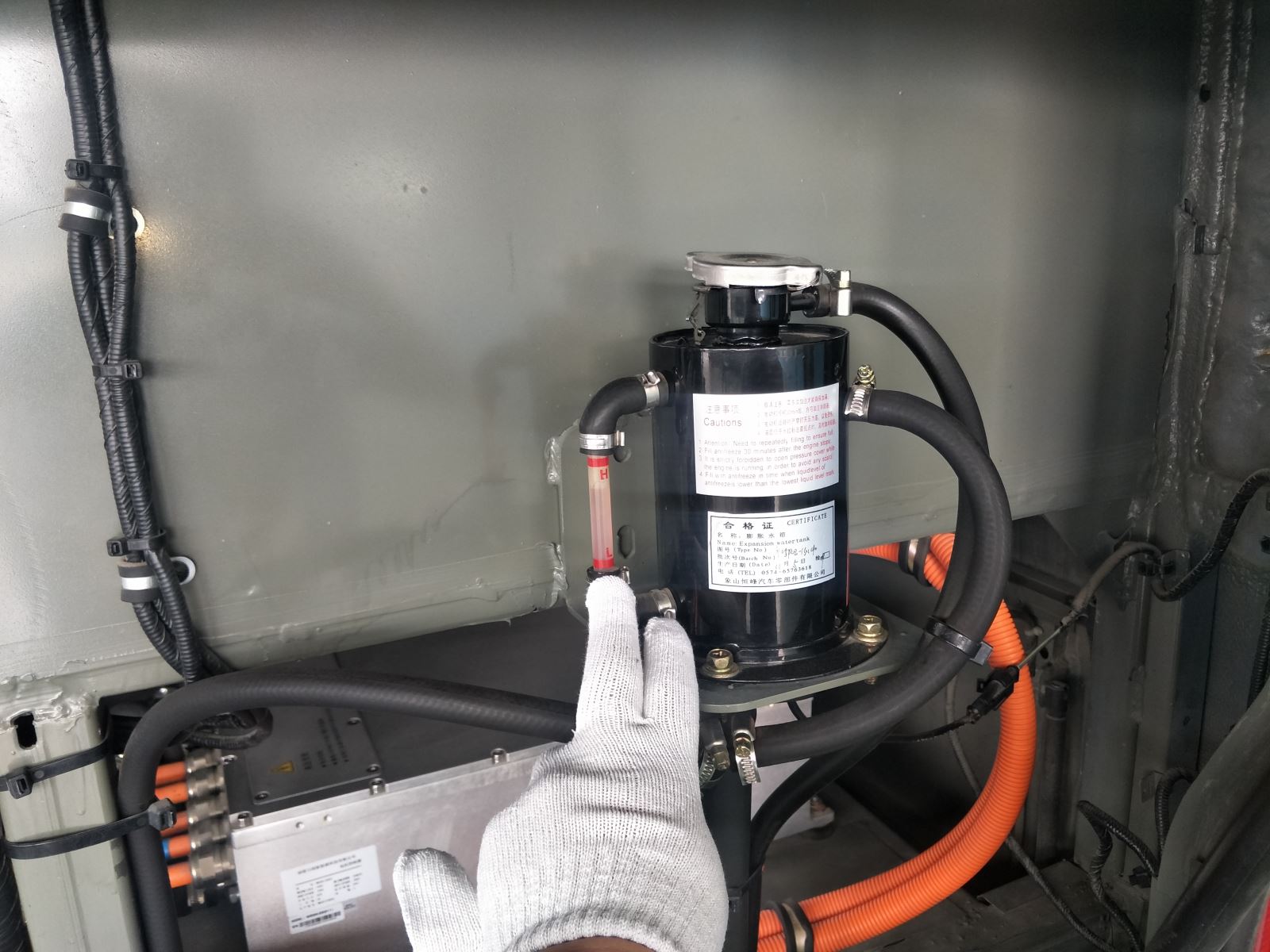 3.熱車后,檢查防凍液儲水罐上端的回水管回水情況,若回水不暢或堵塞會造成水溫過高。