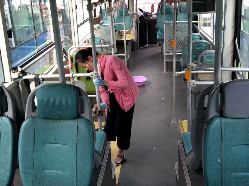 在清掃過程中,大家分工有序,有的用水沖洗車輛周身,有的用抹布、掃帚、水桶、拖把等清洗工具,將車廂內玻璃、扶手、座椅、地面等打掃得干干凈凈。此次活動共清潔車輛10臺次,清理衛生死角31處同時,公交集團經營發展事業部還對車輛的設施設備進行排查,發現損壞及時進行反饋并進行整改,對檢查中發現不合格的車輛及時整改,為乘客營造了一個干凈、整潔、舒適的車廂環境。
